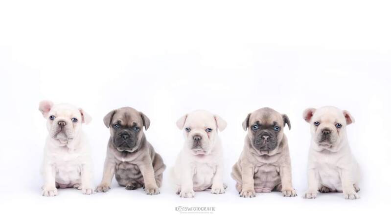 Onder deze `jas`is hij blue sable van kleur. Dit betekend dat Bear in combinatie met een blauw teefje die geen crème draagt alleen maar blauwe pups zal geven. (Blauw, blue tan, blue sable, blue fawn).