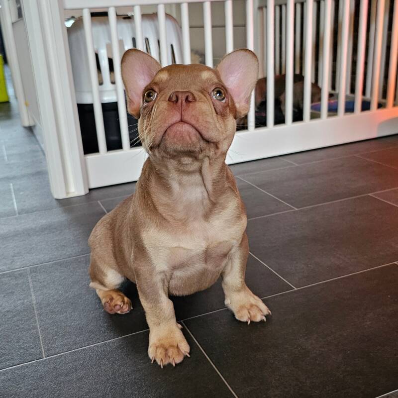 Tesla heeft een zeer lichte choco tan kleur en zijn neus ziet er ook al veelbelovend uit. Het is een prachtige pup om te zien en zijn karakter is geweldig. Zeer leergierig en erg vriendelijk van karakter. We hebben hoge verwachtingen van deze topper.