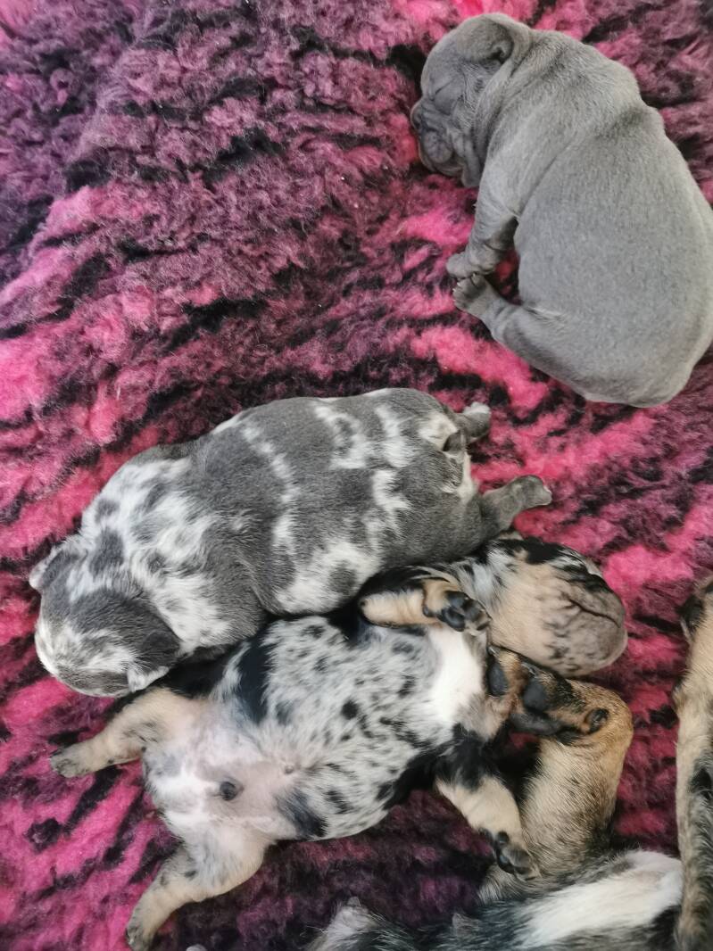 De pups zijn maar met hun drieën, waardoor ze meer dan genoeg melk binnen krijgen. De oogjes zijn inmiddels geopend en de pups zijn heerlijke rolmopsjes aan het worden. Lollypop is een zeer lieve en zorgzame moeder voor haar pups en alles gaat zeer voorspoedig.