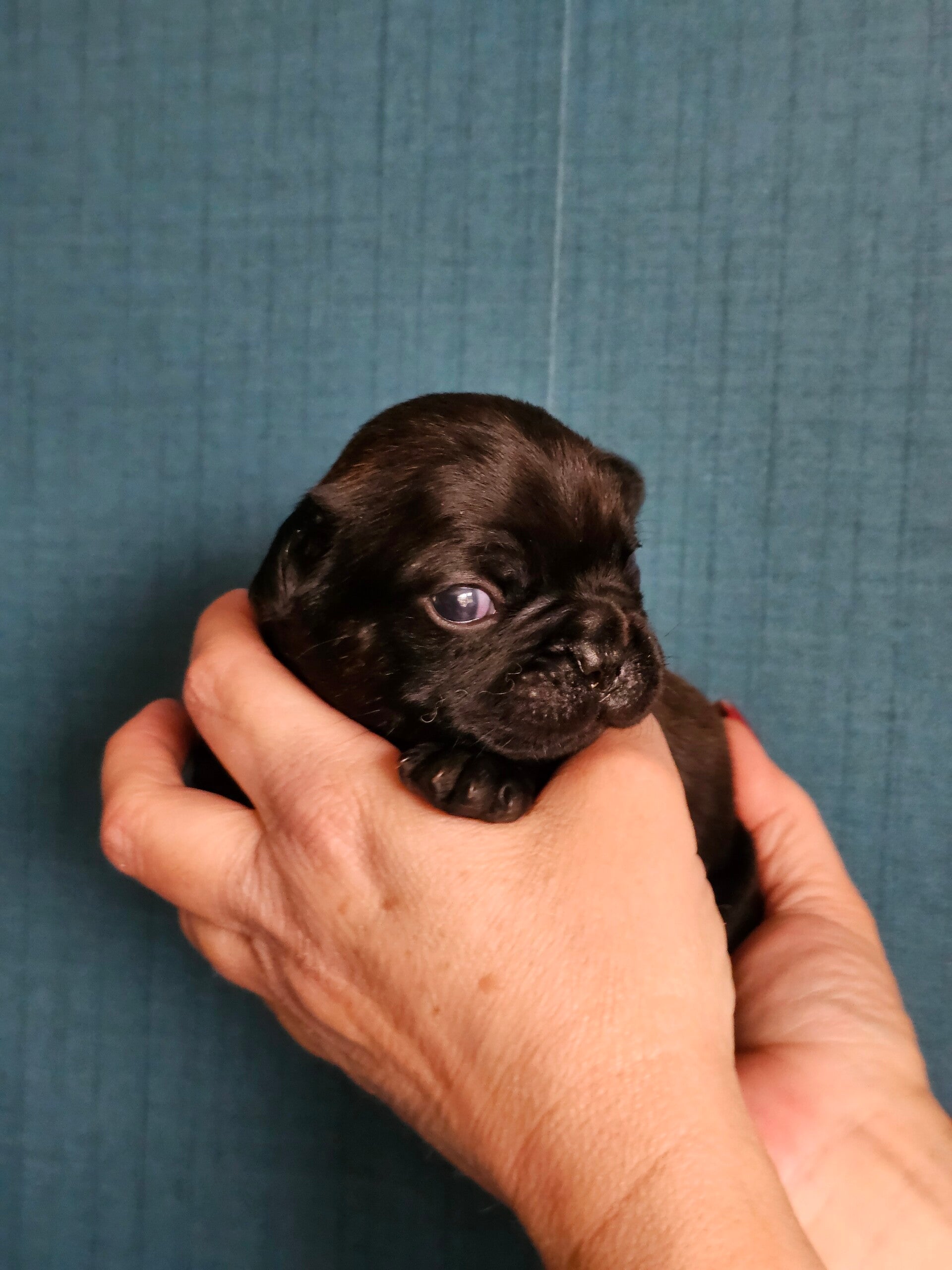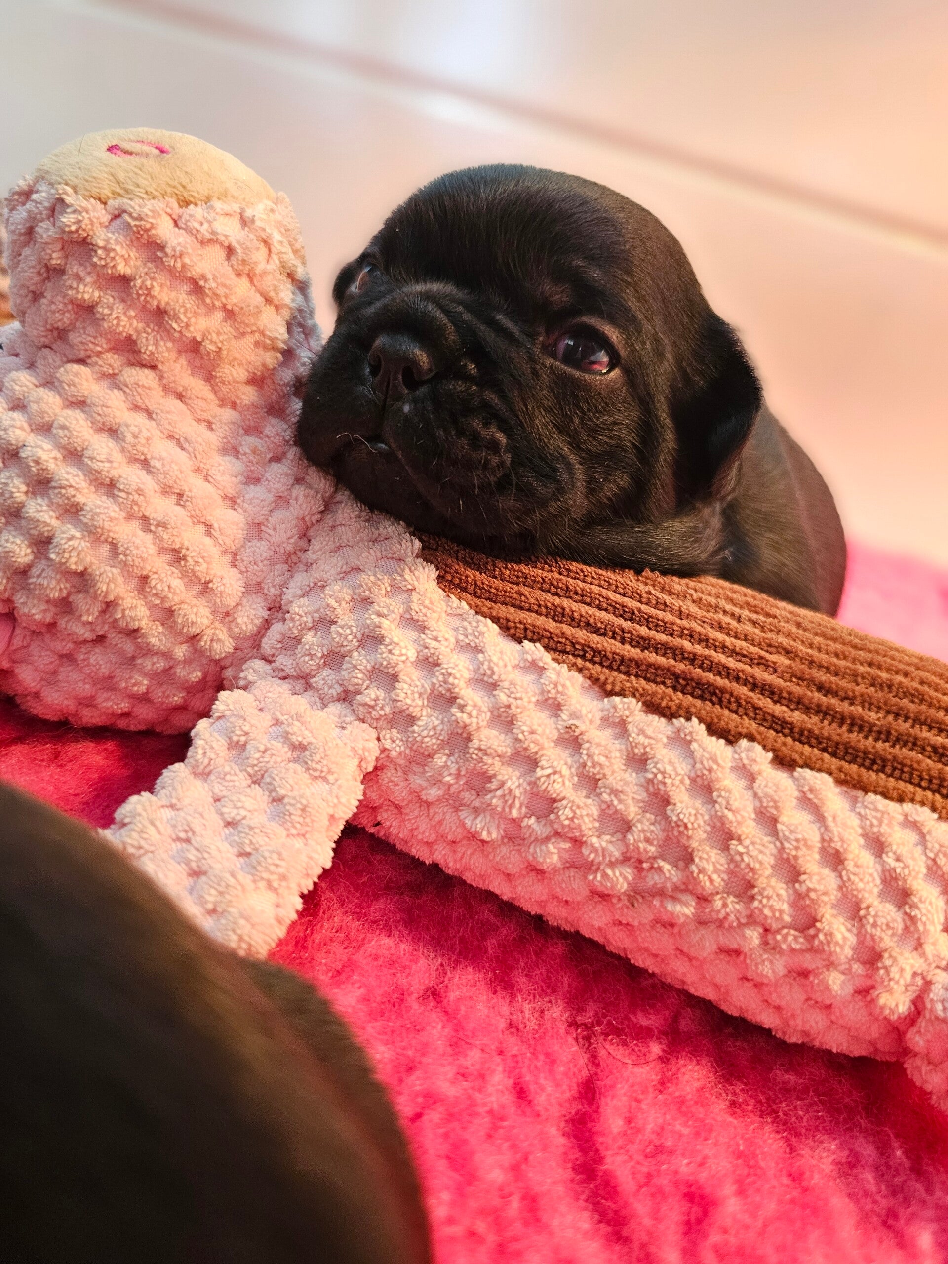 Missy is een fluffy Franse bulldog maar alle pups zullen kortharig worden.